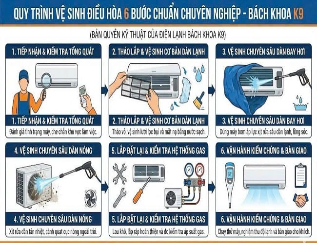 Quy trình vệ sinh điều hòa tại Ba Đình – 6 bước chuẩn Bách Khoa